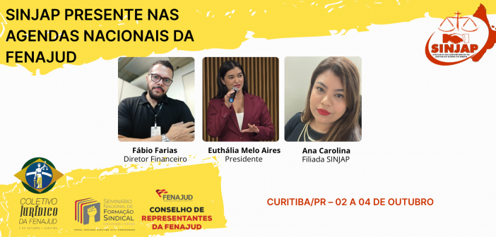 O SINJAP participará ativamente com a sua delegação composta pela presidenta Euthália Melo Aires, o diretor financeiro Fábio Farias (ambos presentes nos três dias) e a filiada Ana Carolina, que integrará a programação no dia 03 de outubro, voltado à formação sindical.